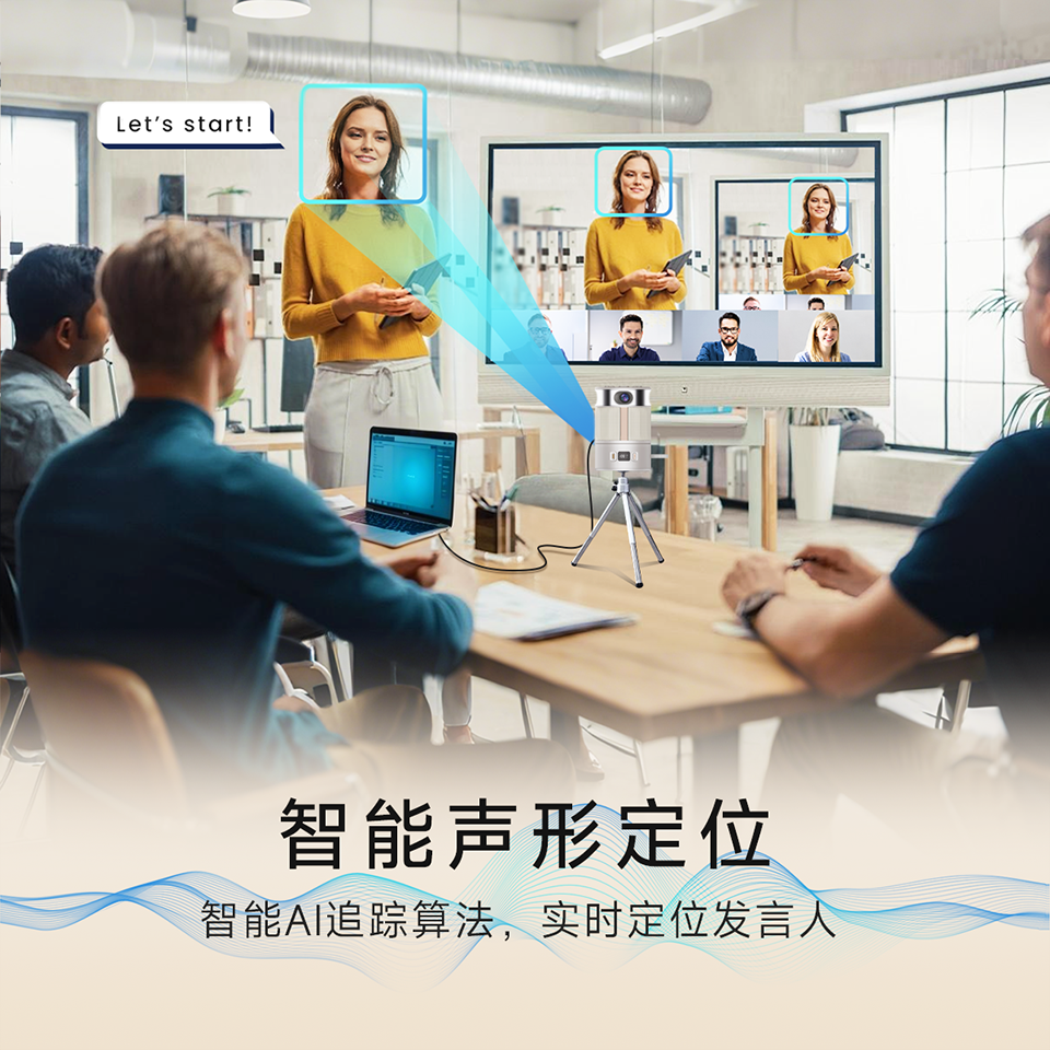 使用定向麦克风阵列和AI图形算法结合的实时现场发言人定位。